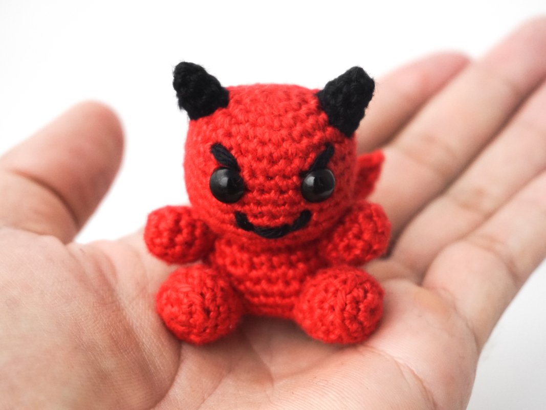 This little devil can be crocheted relatively quickly and is perfect as a decorative figurine, gift or key chain.