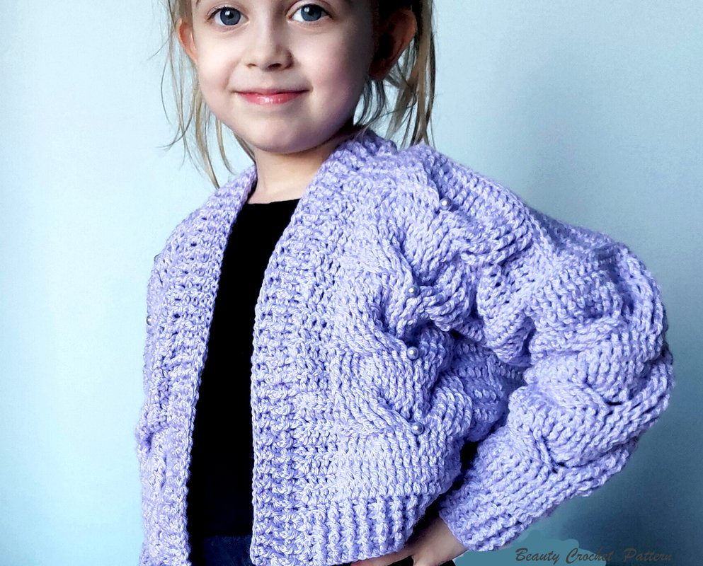 This is Girl's Sweater Pattern for bomber cardigan with beautiful cable elements. Pattern includes sizes: Toddler (1-3 years); Child: 4-6 years; 7-9 years; 10-12 years