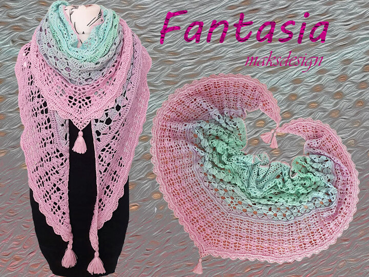 Fantasia ist ein großes Tuch das flach gehäkelt ist.