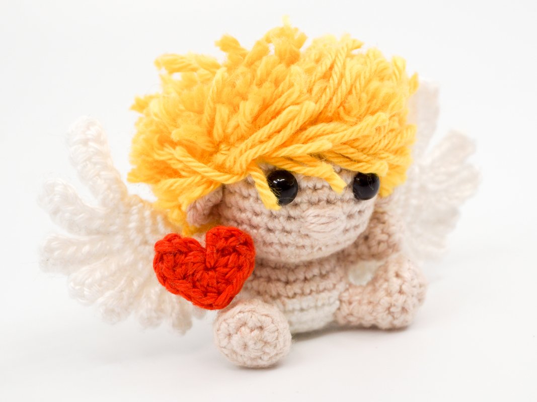 This little cupid can be crocheted relatively quickly and is perfect as a decorative figurine, gift or key chain.