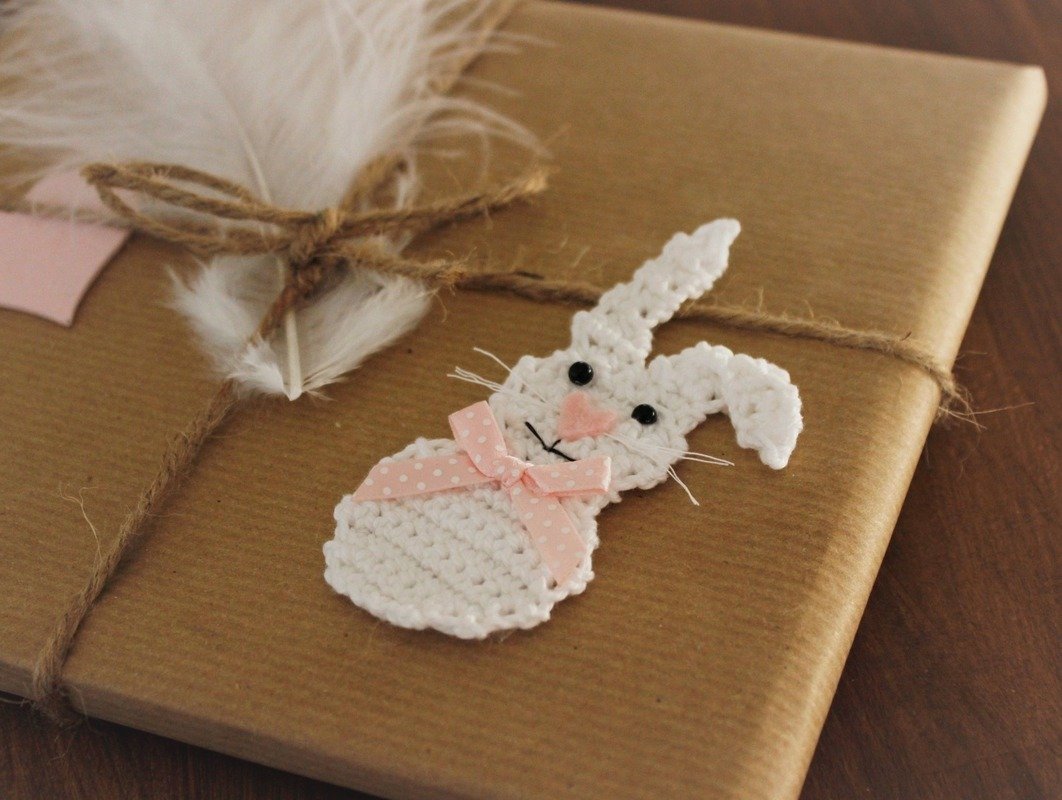 Häkelanleitung für eine zuckersüße Häschen-Applikation, gehäkelt aus festen Maschen.