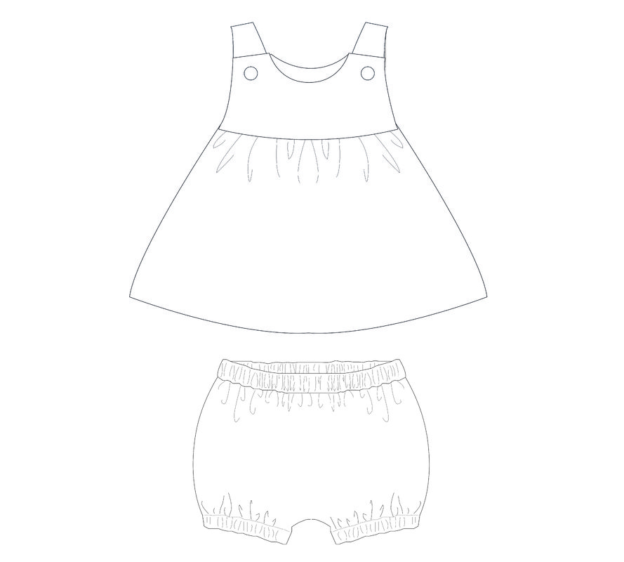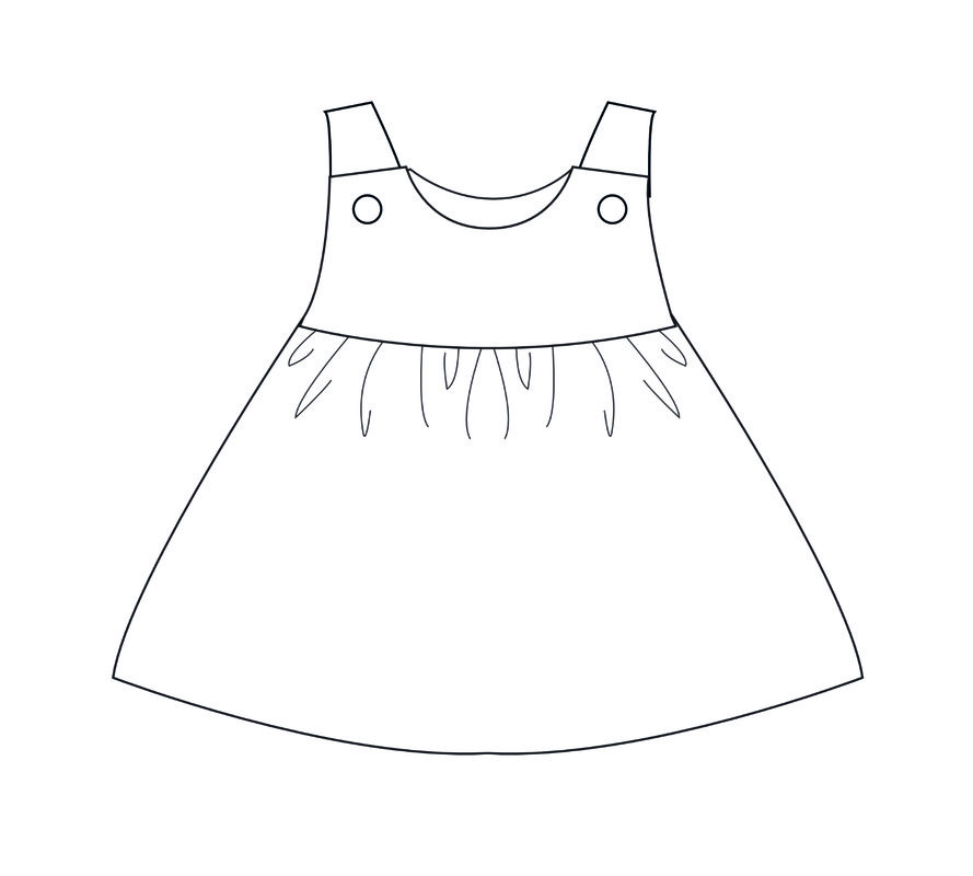 Version A (Clara): Dress with lined yoke, button straps, and ruffled skirt.