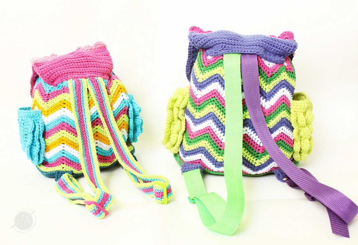 The backpacks can be crocheted with two different straps. The first option would be to make the crocheted straps and use the second finished straps (explained in the pattern).