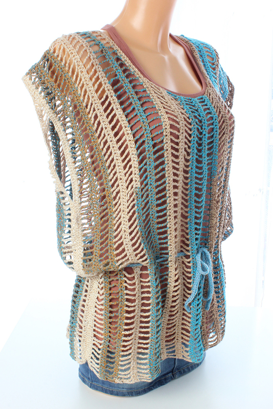 A wonderfully airy and lightweight tunic — not just for summer. It works up quickly and easily, and worn over a fitted dress or a long-sleeved shirt, it also becomes a great piece for autumn and winter.