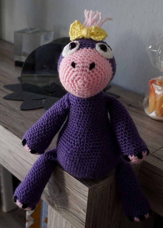 In the crochet instructions, the manufacture of the Dino Leila is described in Englisch (US) and with numerous pictures on a total of 12 pages. In our instructions there is always a picture for each step, so that you can easily rework.