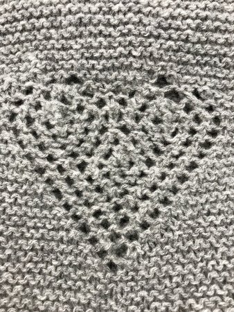 The basic pattern for My Herzerl is Garter Stitch with needle size #4. The lace pattern for the heart is a chart. The edging is a crocheted Picot. None of these techniques are difficult, but you need to pay attention to the chart for the heart. And you can always ask me for advice.