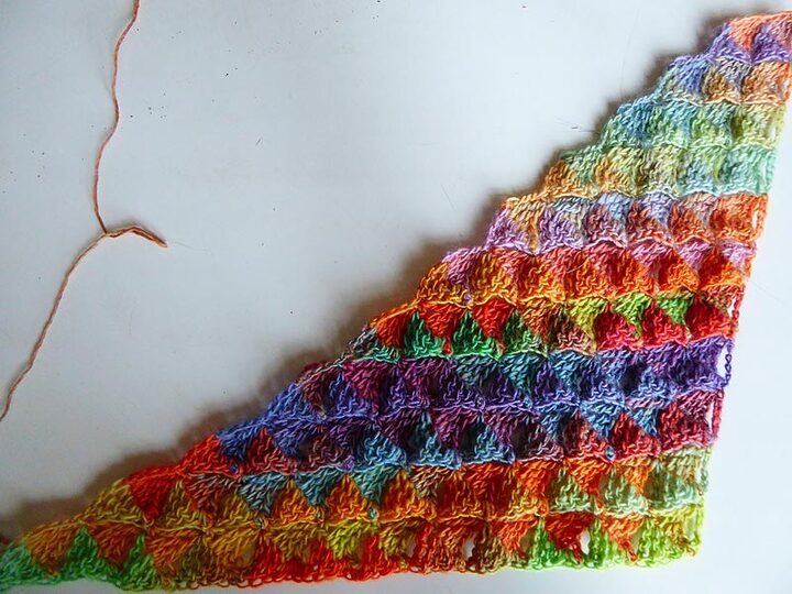 Dieses ungewöhnliche Dreieckstuch kommt besonders in Verlaufsgarnen mit kurzen Farbverläufen zur Geltung!