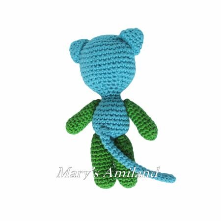 Finished Size: if done with cotton fingering-weight yarn (4 ply), 2.5mm hook, it is 14 cm (5.5”) high w/o ears and 4cm (1.6”) wide w/o arms. This may vary depending on the yarn and hook size you decide to use.