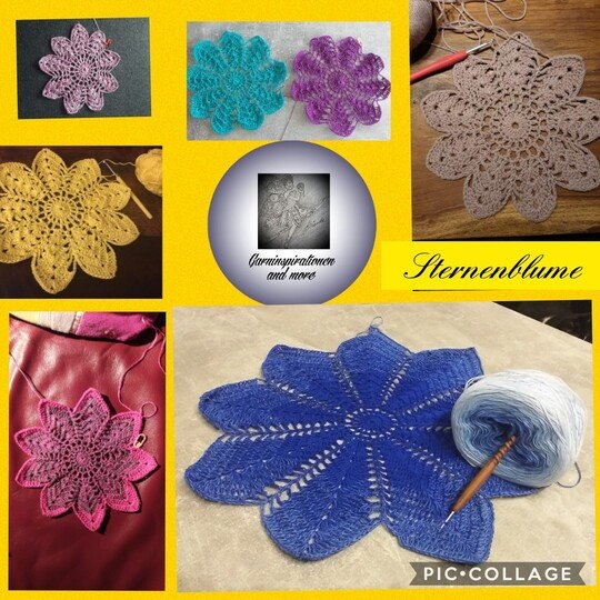 Die Sternenblume kannst du mit Garnresten häkeln oder auch mit einem Bobbel.