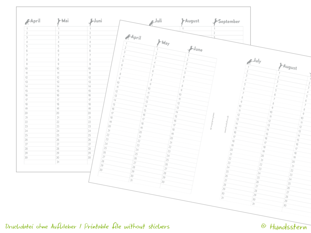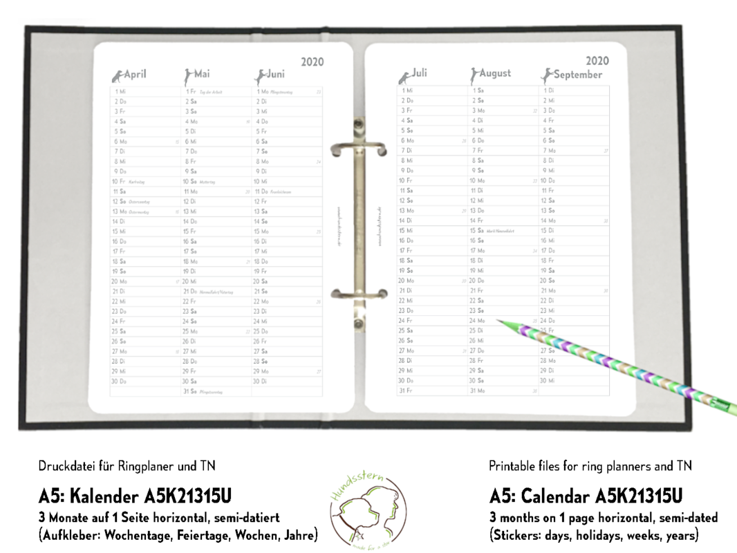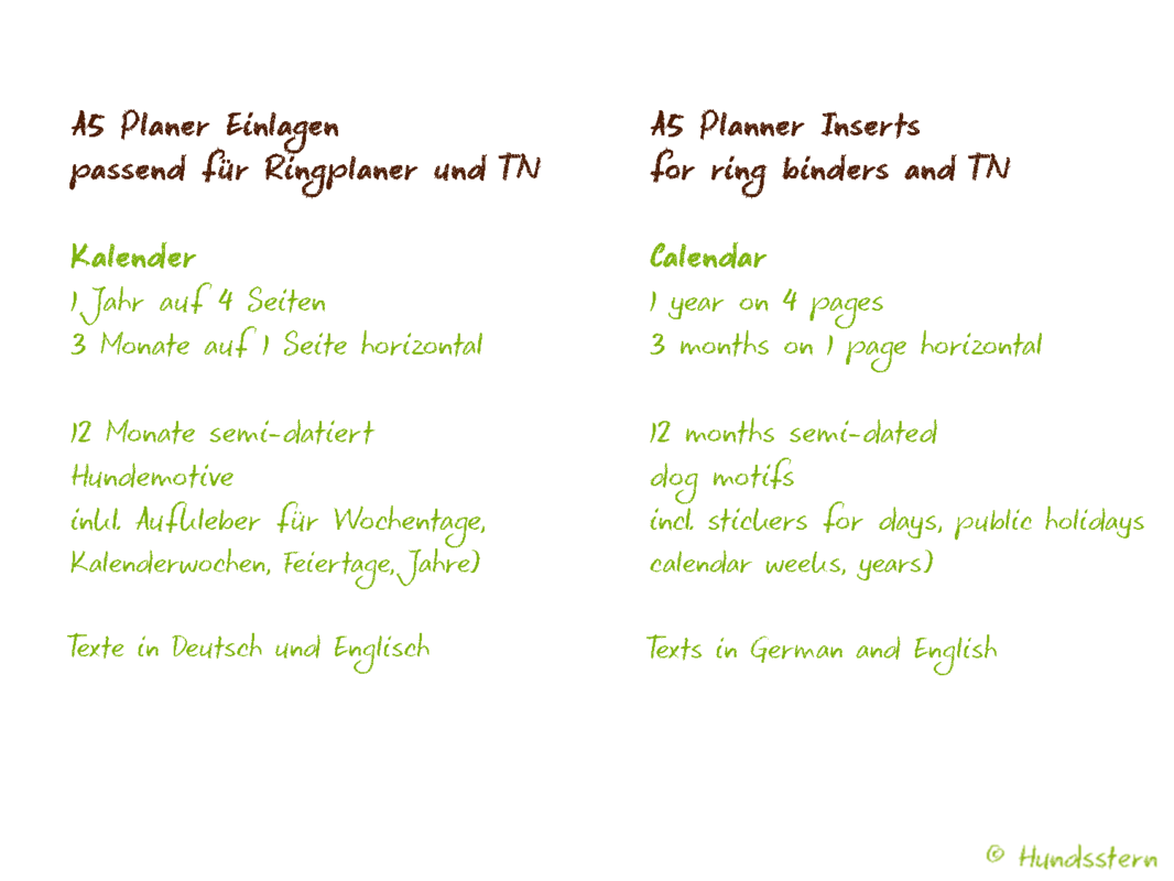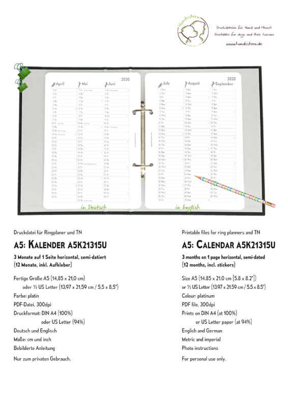 This printable file for calendar inserts in A5 format is designed so that the pages fit both ring planners and TN!