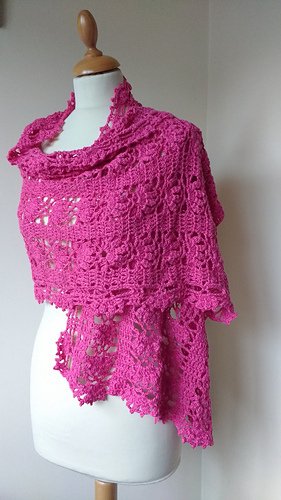 Rosy crochet wrap is an easy 4 row repeat pattern.