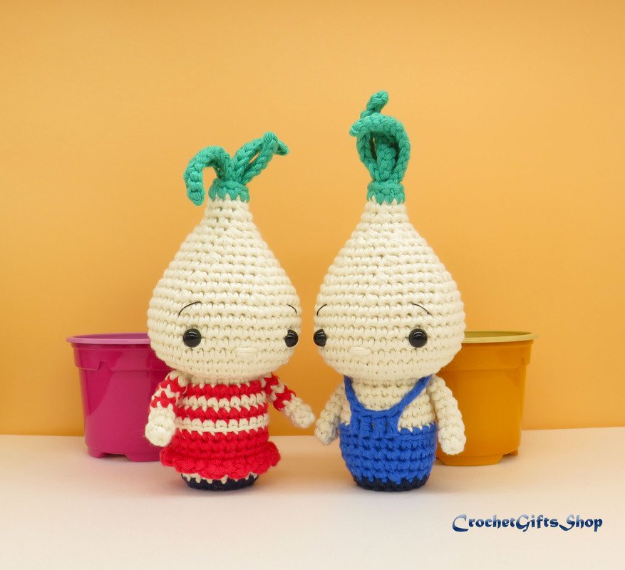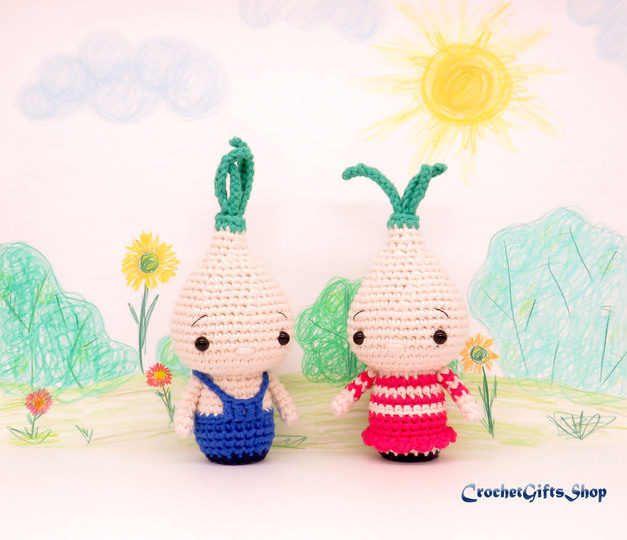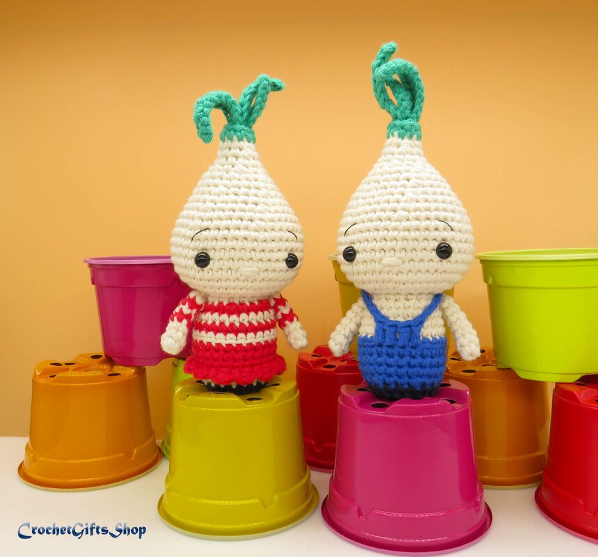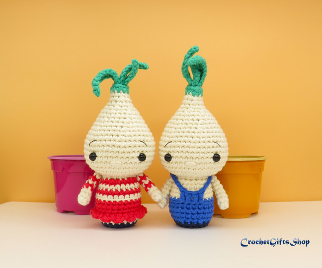 Cute crocheting toys amigurumi flower bulbs dolls onion spring baby boy and girl.