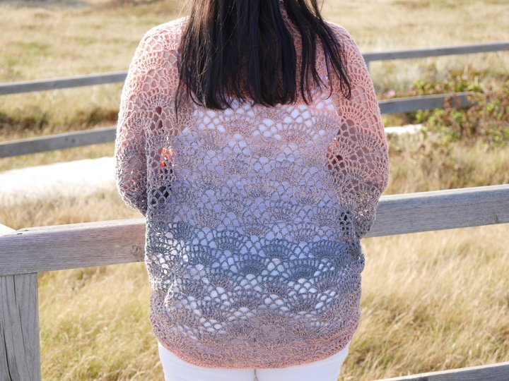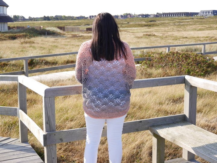 Dieses Modell schaut mit Farbverlaufsgarnen am schönsten aus, egal ob zarte oder kräftige Farben das Muster kommt immer gut zur Geltung.