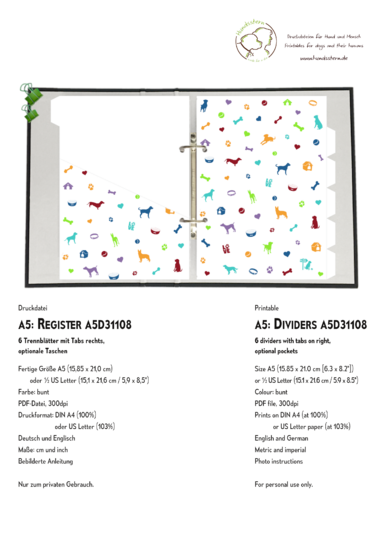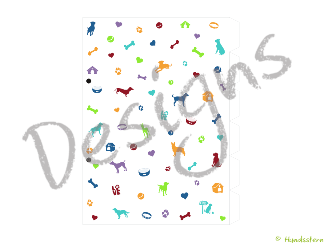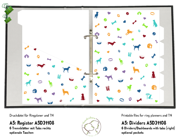 Motif A5D31108 "Dog Icons": 6 dividers with tabs right, optional pockets