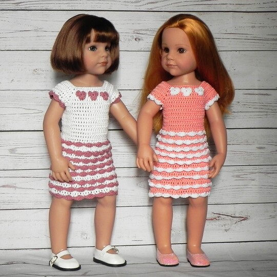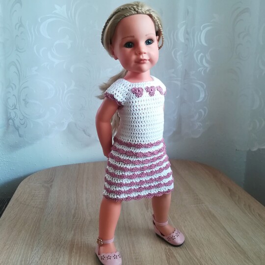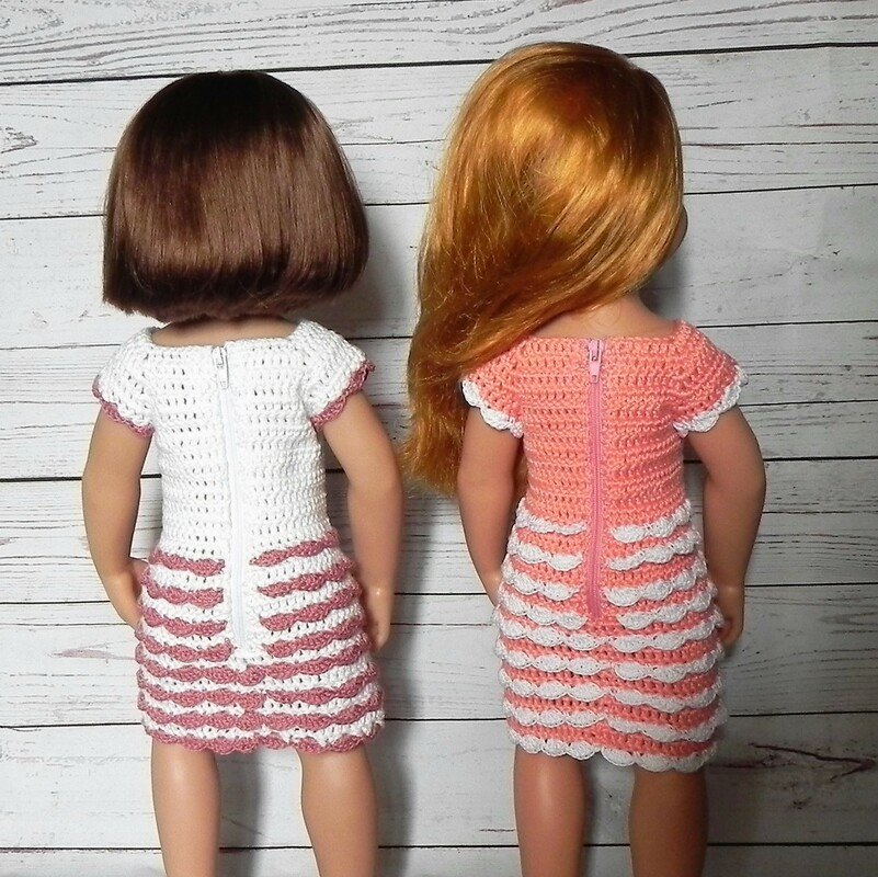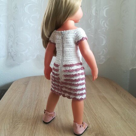 This is a crochet PDF pattern for a beautifful doll dress with ruffles and a back zipper for easy dressing. It is designed to fit 18" dolls (about 45-50 cm).