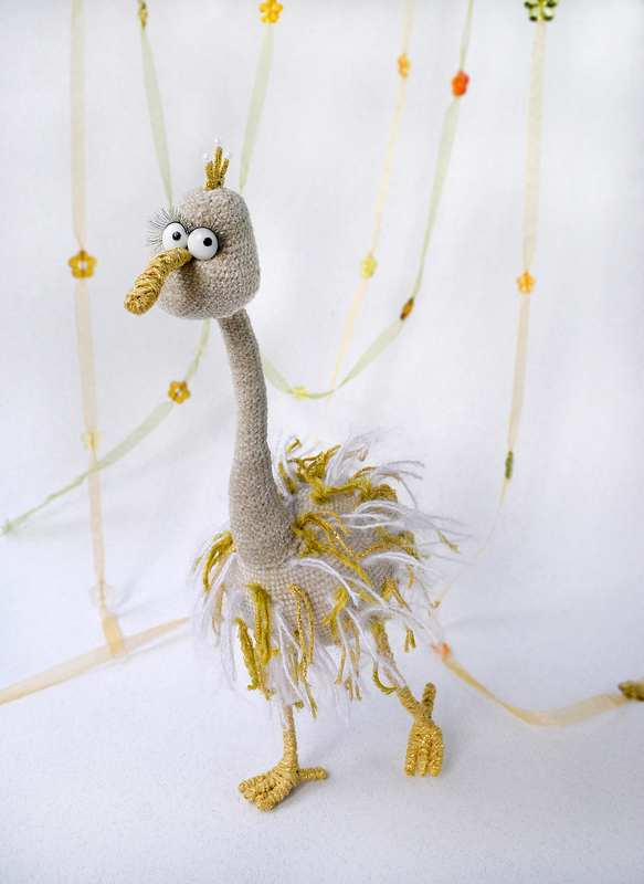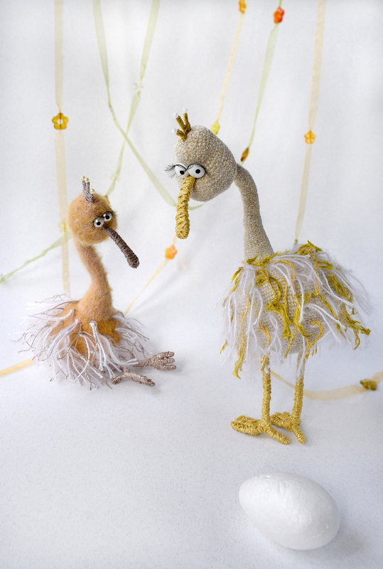 –a sewing needle, hollow fibre for stuffing, all-purpose clear glue, e.g. UHU, 1.5 diam wire – approx 1.20m long, 1 foam hair curler – approx. 1cm in diam and 20cm long, adhesive fabric tape, a pet brush, 3 beads for the crown, fake eyelashes or a re-born doll eyelash strip – approx. 3cm long, 2 x 1.2cm diam white plastic/glass/wooden beads for the eyes (wooden beads can be painted over with white paint), black half-beads for the pupils (alternatively these may be drawn with black ink or paint).