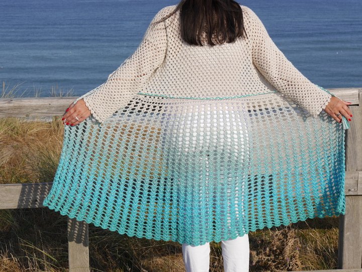 Die Jacke kann lässig offen getragen oder mit einer Kordel, Gürtel oder auch Knöpfen geschlossen werden.