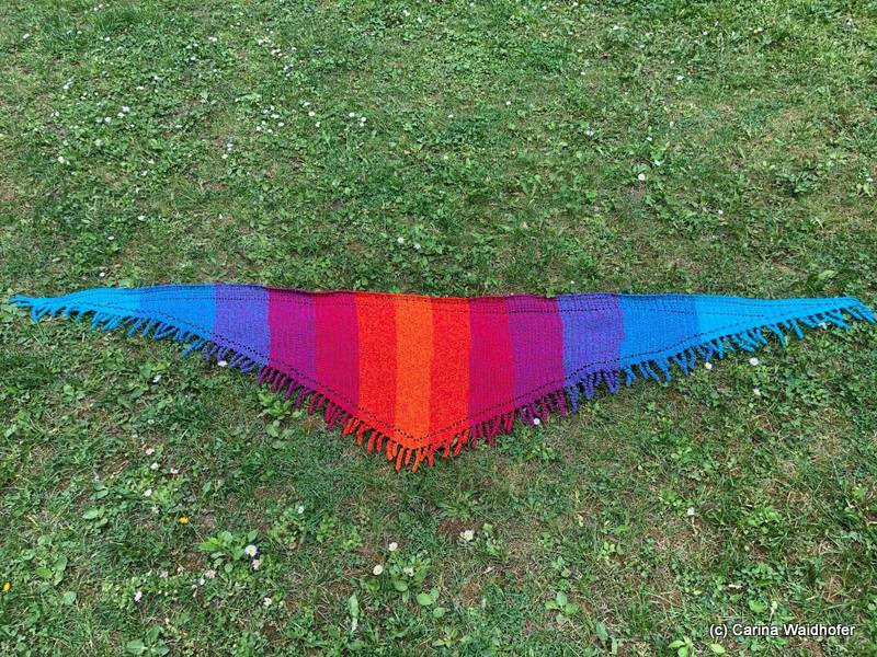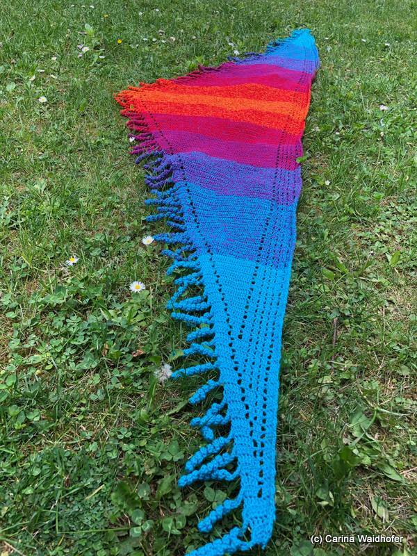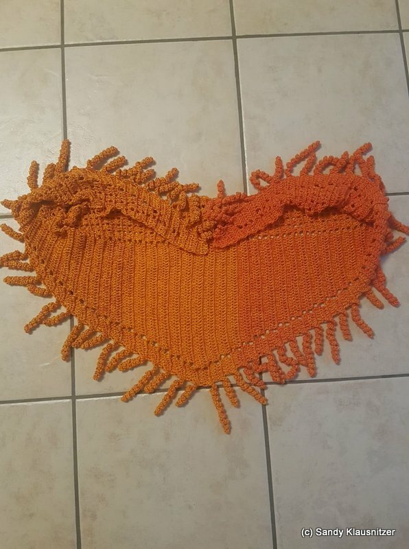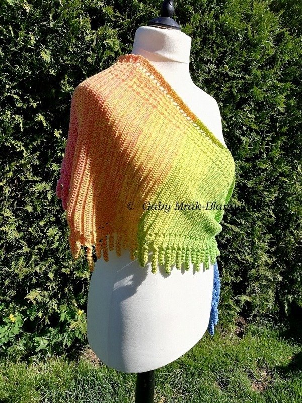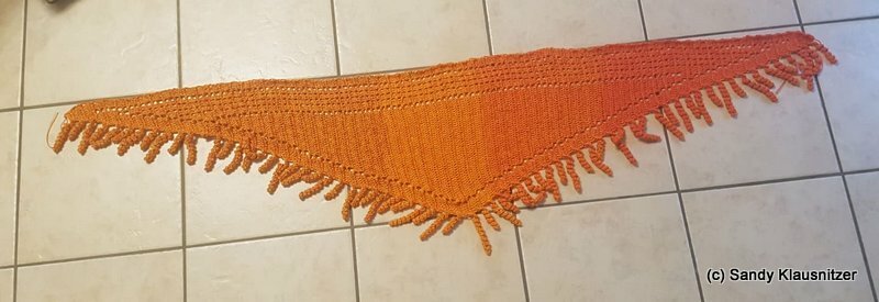for my version is used a yarn cake from 3ply, 1200m, with a Hook Size 3,5mm and the sice was 280 x 55cm