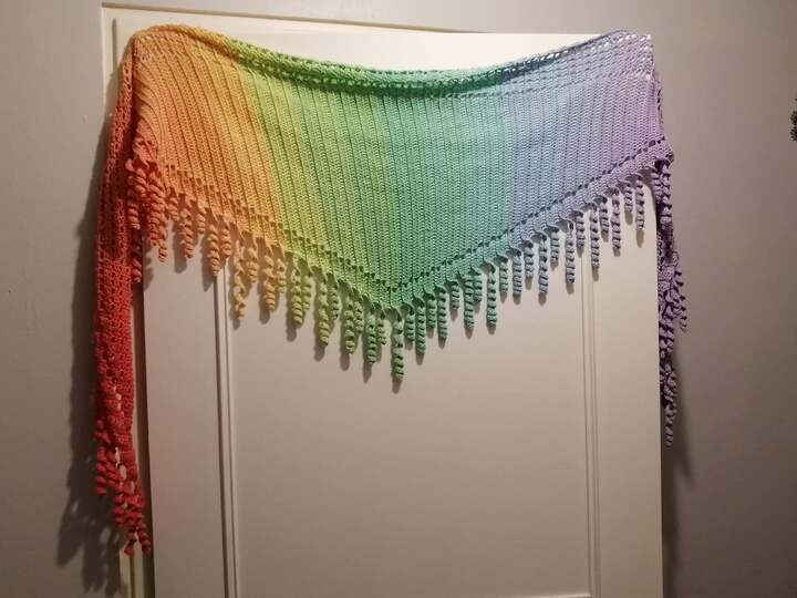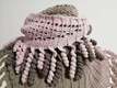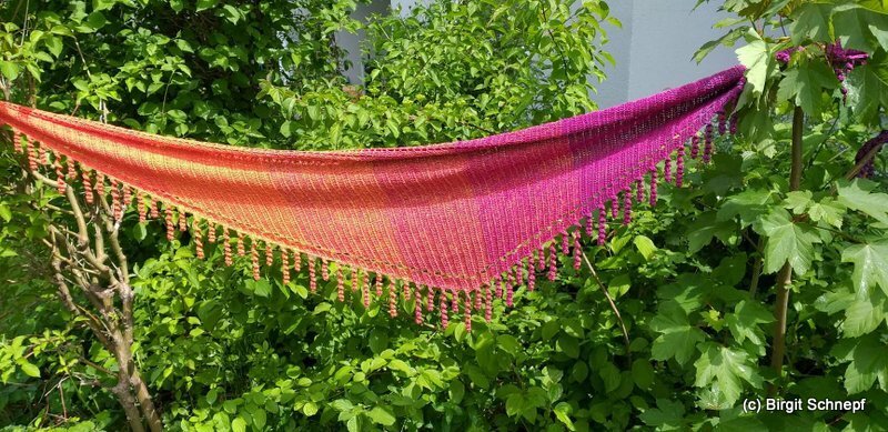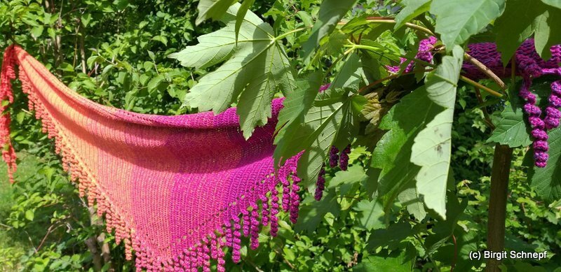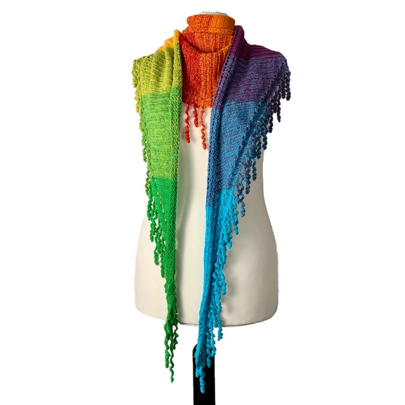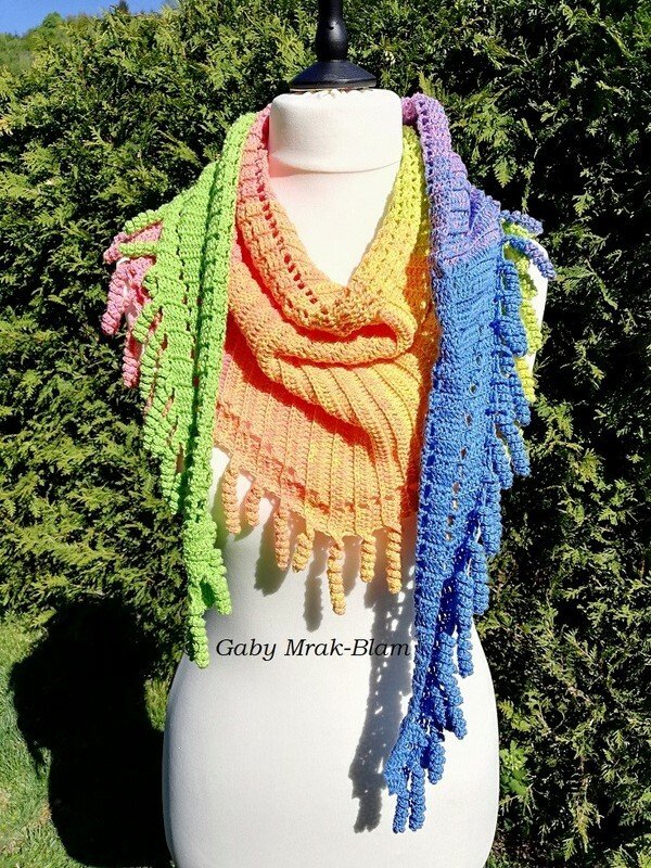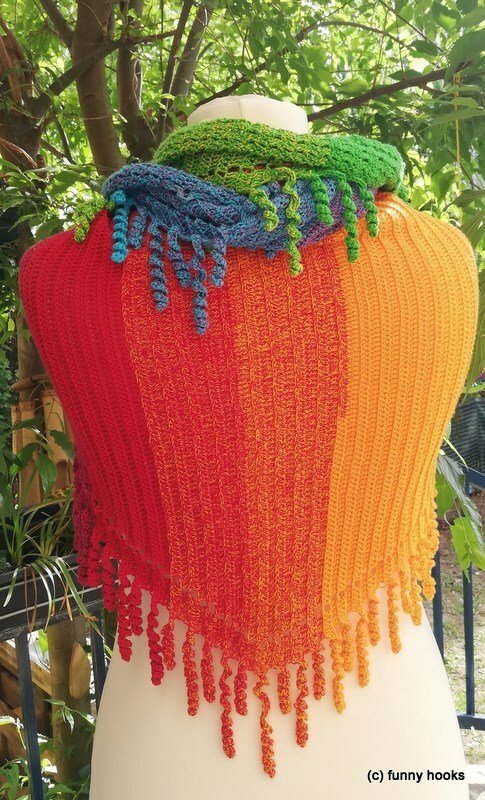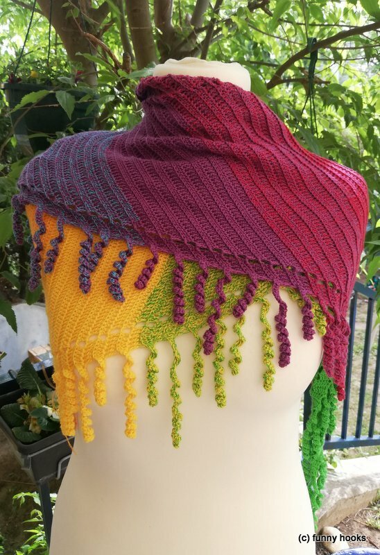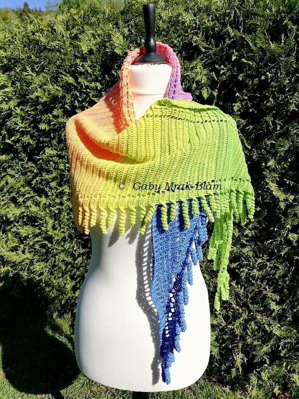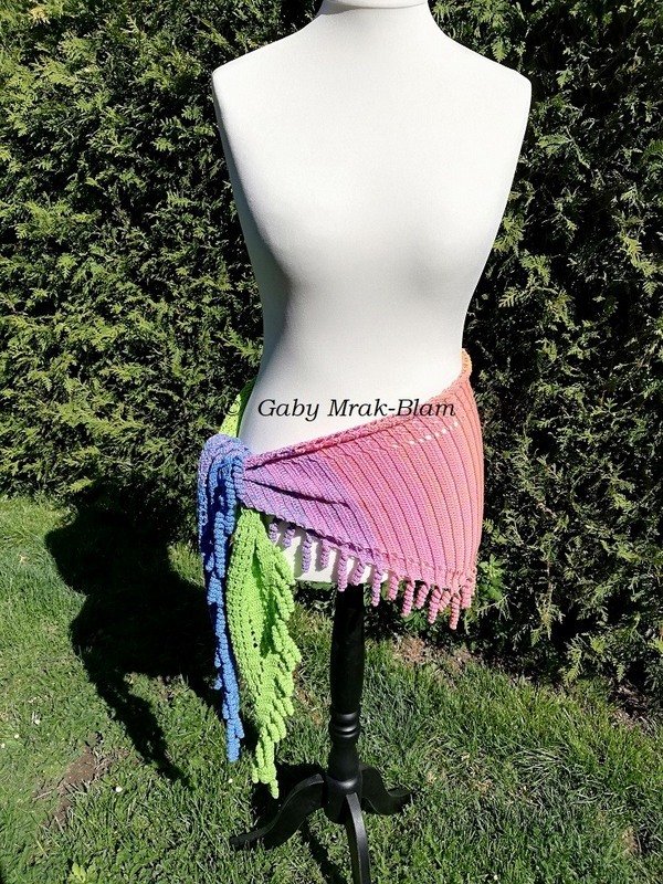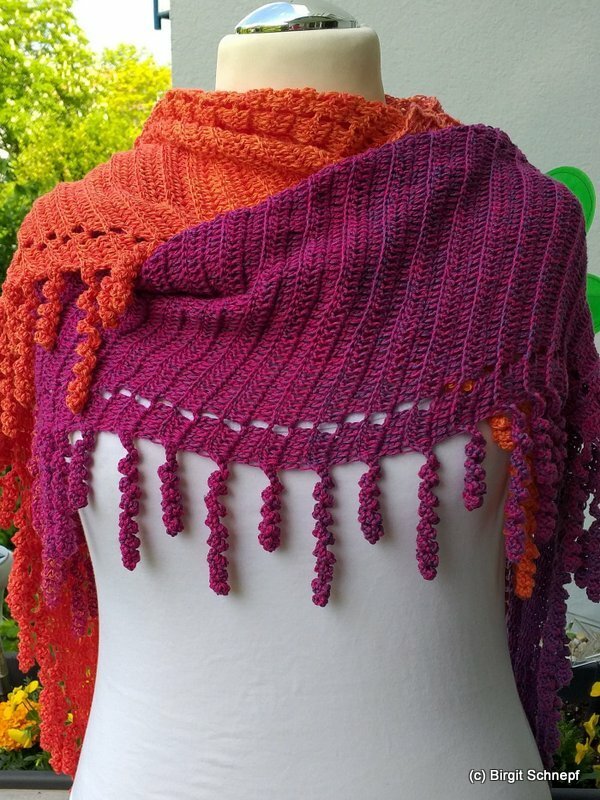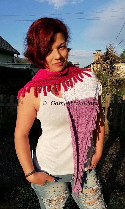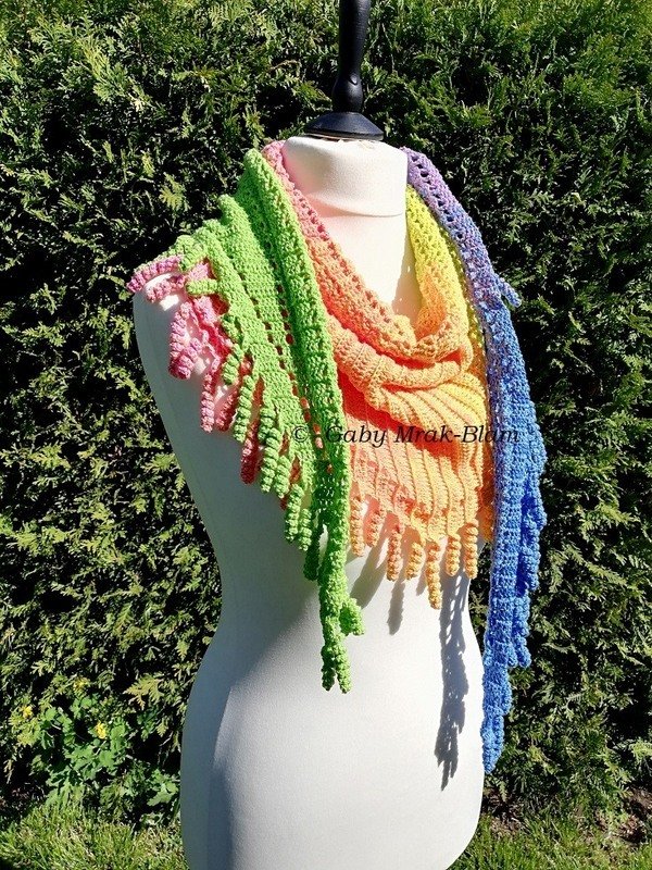 the "spiralli" scarf is made as a bactus and with its "curls" is a real eye-catcher. The scarf also tolerates a lot of color and looks funny and playful. Because of the bactus shape, the tip doesn't get too deep either.