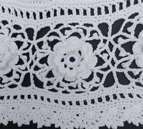 This crochet scarf pattern is made working shell edged flower medallion motifs joining as you go and then filler motifs are worked in to complete the pattern. Crochet using 4ply/fingering cotton.