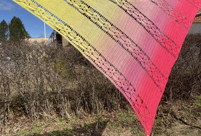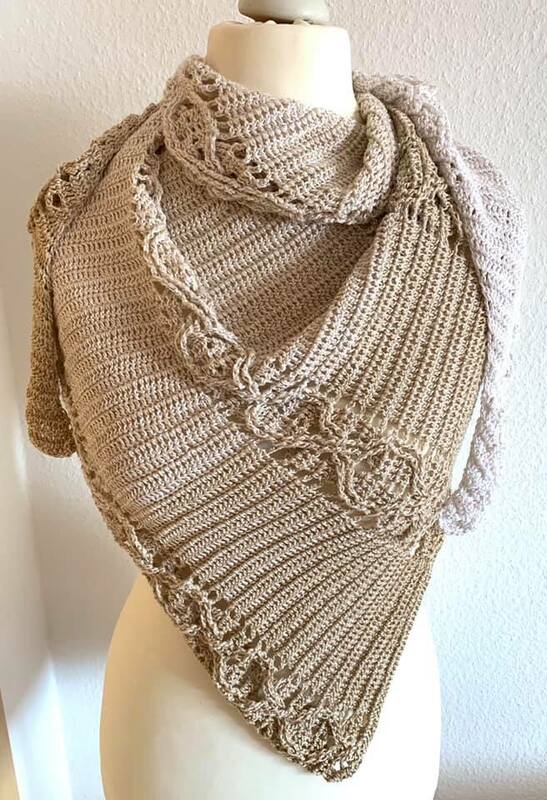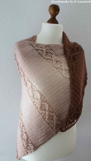 LunaLiisa is an asymmetrical triangular scarf with a cable pattern