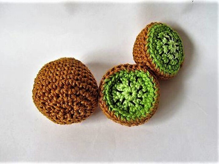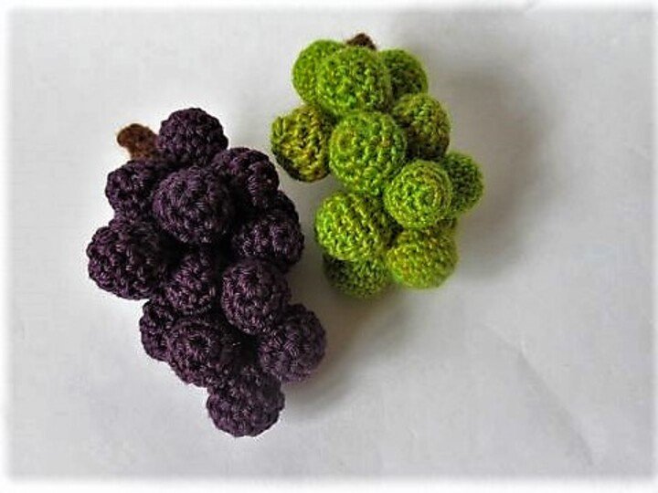 Die Größe der einzelnen Früchte hängt von der Dicke des verwendeten Garns ab. Mit dem empfohlenen Garn werden sie etwas kleiner als die echten Früchte.