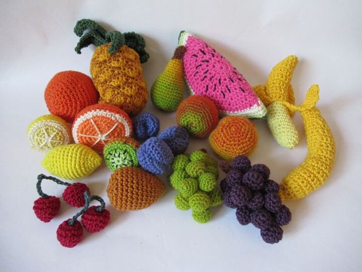 Damit das Obst möglichst realistisch wird, und man es als solches erkennt, solltest du vor allem auf passende Farben achten. Mit einem Garn, das einen sanften Farbverlauf hat, kannst du recht eindrucksvolle Ergebnisse erzielen. Ich habe bei jeder Obstsorte angegeben, welches Garn ich verwendet habe. So kannst du am besten mit deinen Wollresten vergleichen.