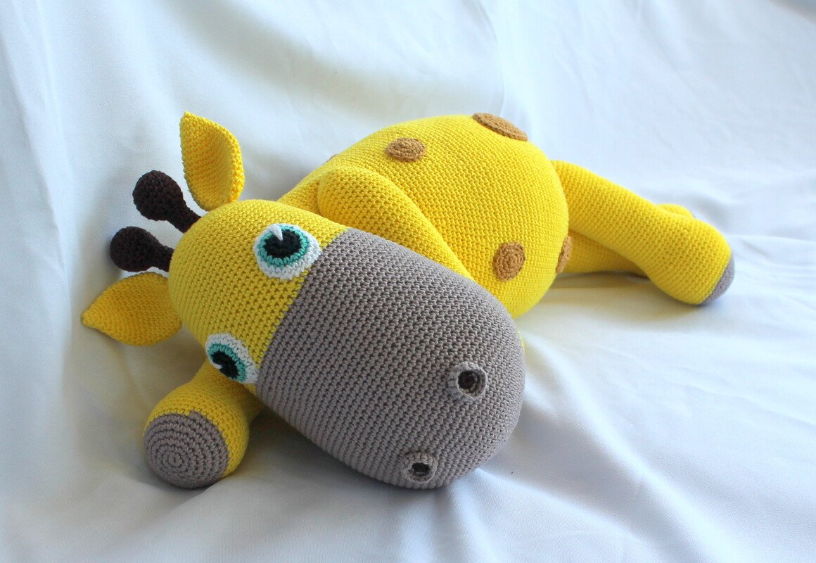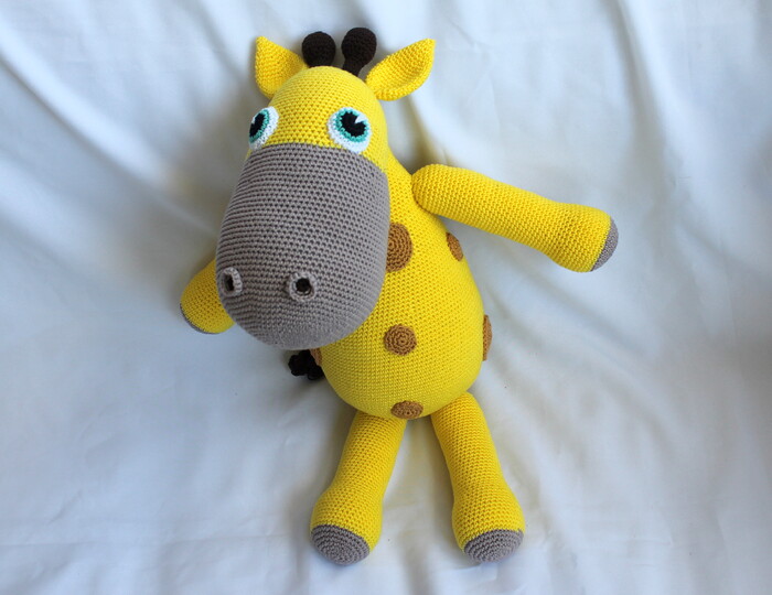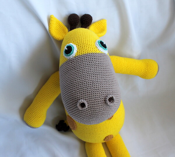 The crochet giraffe will be about 55 cm/ 22 inches tall.