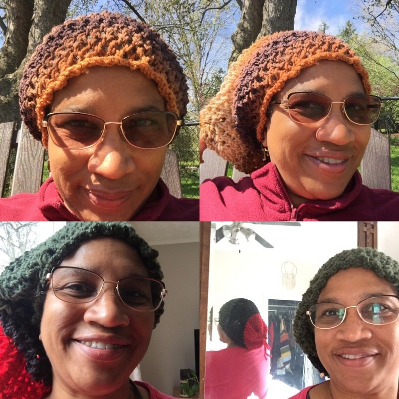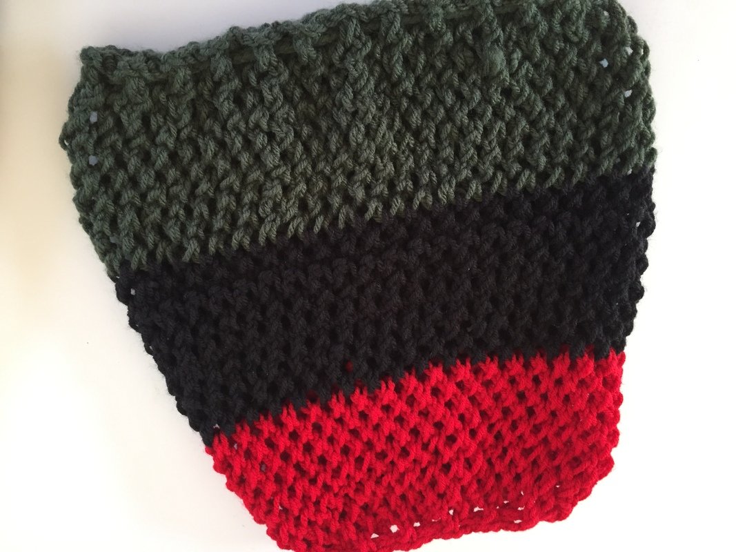 This knit tam pattern is also called a dreadlocks socks and net tube. It is made for people with longer dreads or locs. This the knit version and knit rather than to croI used a very easy open knit stitch and drawstring for a great fit.