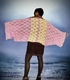 Die große Fassung in Pink und gelben Streifen ist mit 250g gestrickt und kann auch als Seelenwärmer getragen werden, dafür habe ich sehr kleine Druckknöpfe am Rand angenäht.