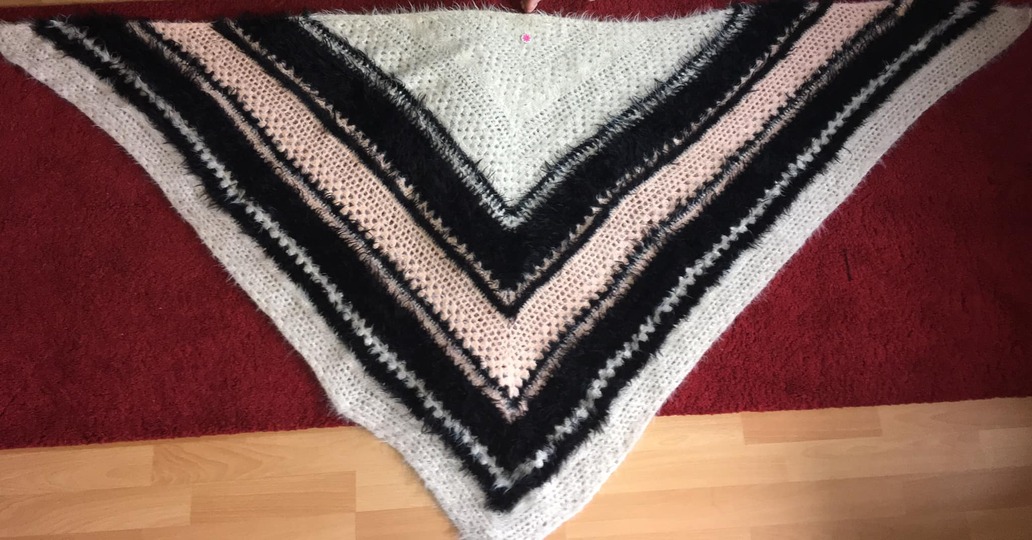 My finished shawl measured a width of 2,40m and roughly 1,20m top to bottom peek.