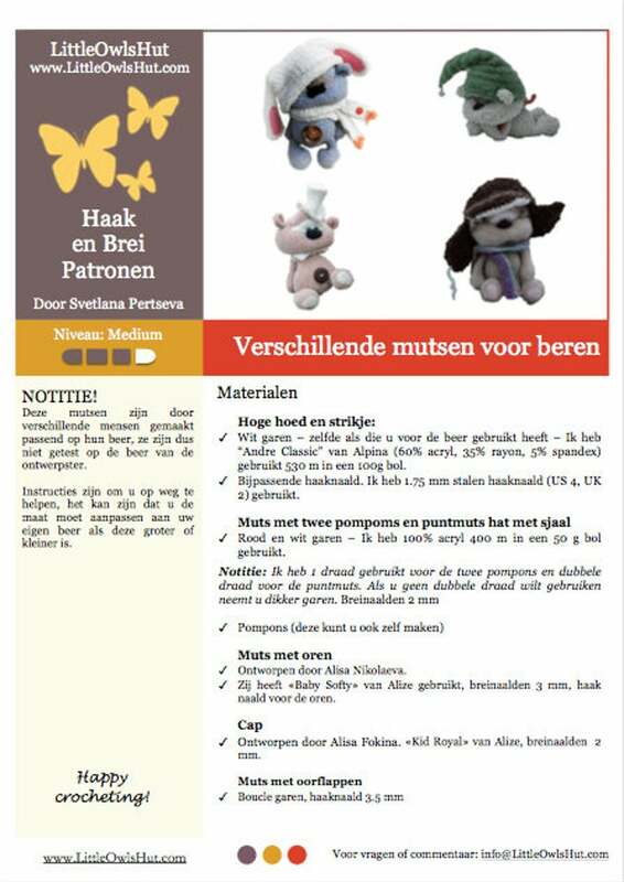 De mutsen zijn gemaakt door verschillende ontwerpsters, de maten verschillen dus. Het kan zijn dat u het patroon aan moet passen om de muts passend te krijgen voor uw beer.