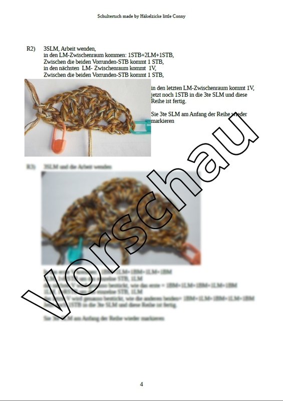 Was Du bekommst ist eine 11 seitige, sehr üppig bebilderte Anleitung, die Dich ausführlich durch die ersten 8 Reihen führt und am Ende gibt es sogar noch die Häkelschrift dazu, für alle, die lieber nach Häkelschrit arbeiten.