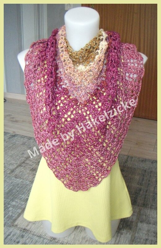 Nadelstärke 4 (da ich sowieso sehr locker häkel), hat das Tuch eine