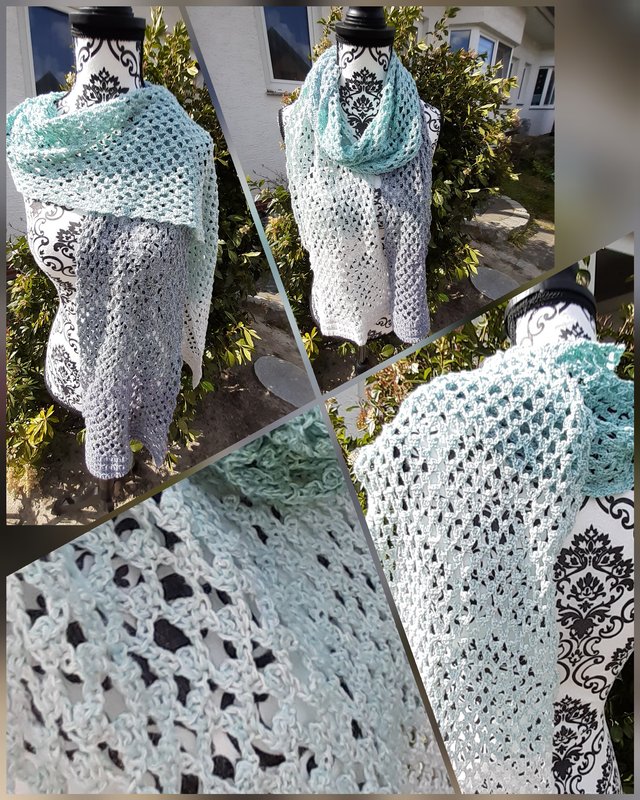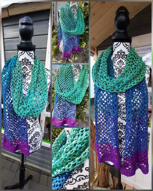 ihr könnt es als normalen Schal oder als über grpße Stola arbeiten. Je nach persönlichem Geschmack