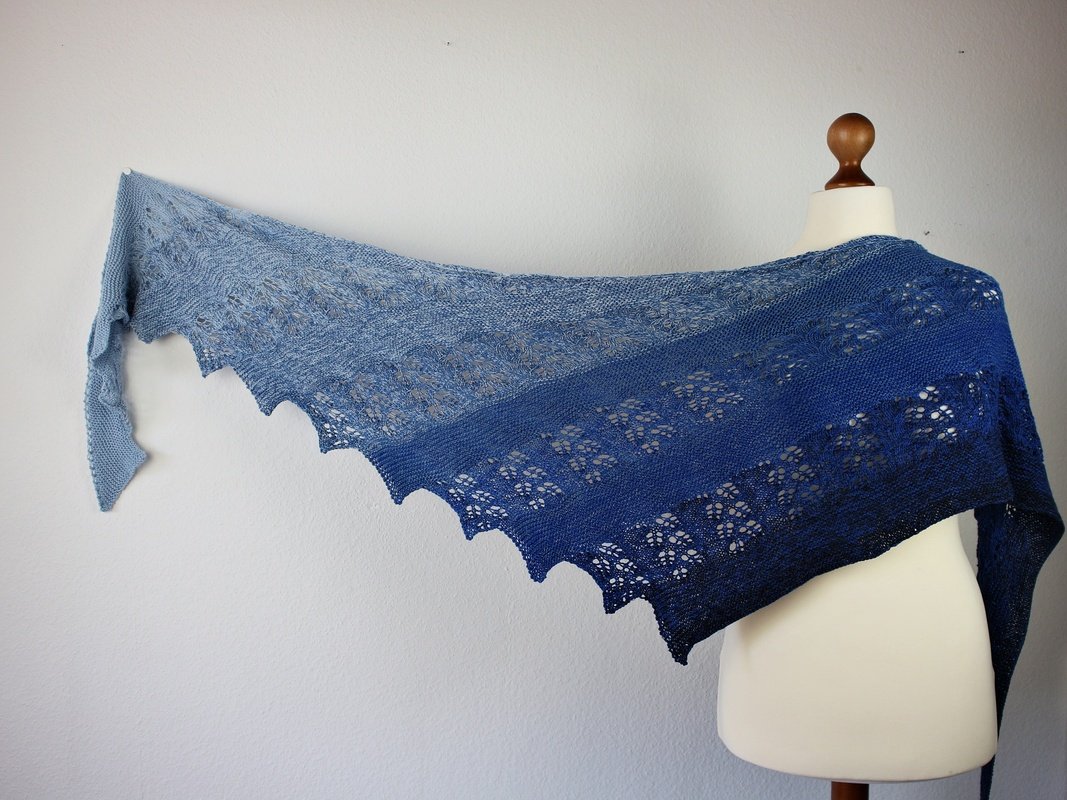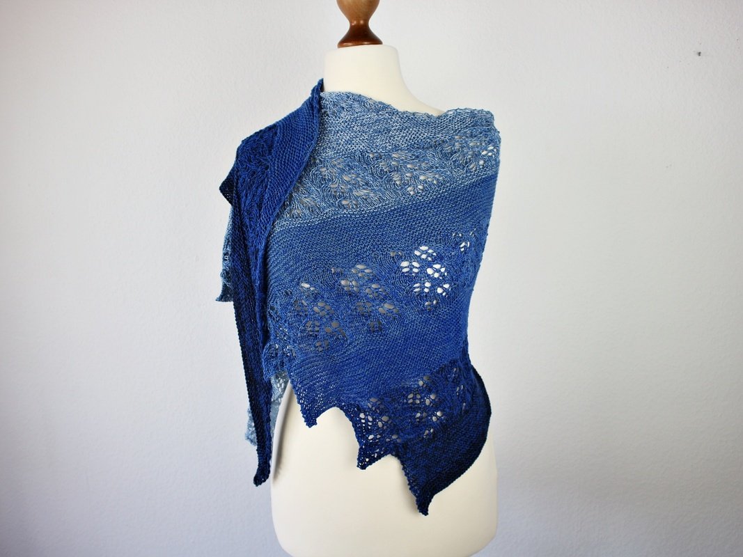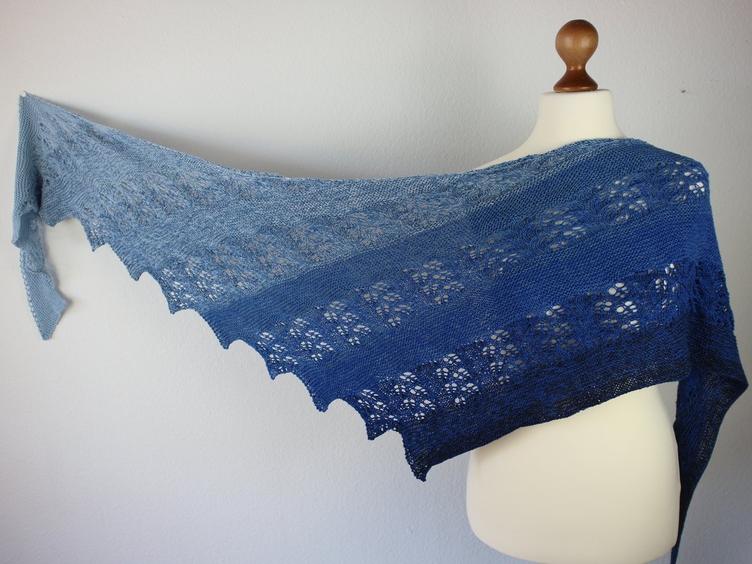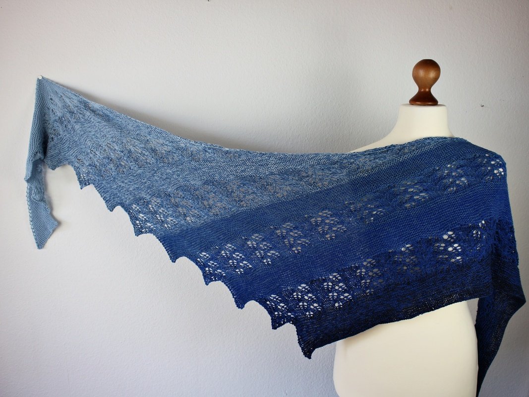 Gauge: 21 stitches and 41 rows to 4 inches (10 cm) in garter stitch, after blocking. Gauge is not crucial for this project, but changes might result in a smaller/larger shawl and different yardage requirement.