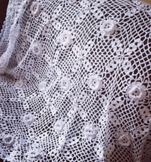 Crocheted in cotton with an Irish Rose pattern this is an heirloom blanket.