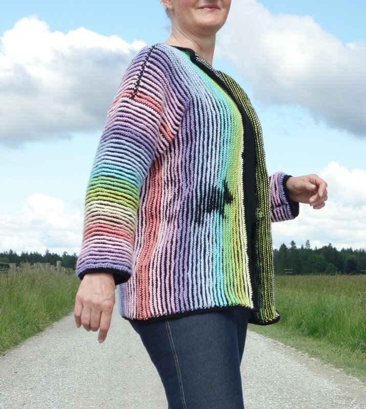 Diese Jacke ist in der Technik Illusionsstricken gearbeitet.
