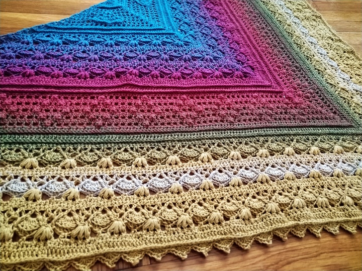 This beautifully textured shawl is very close to my heart as I designed it for my husband's aunt as a thank you gift who's been helping me a lot recently.