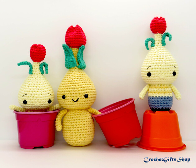 Tulip bulb doll https://www.crazypatterns.net/en/items/57806/pattern-amigurumi-flower-tulip-bulb-doll