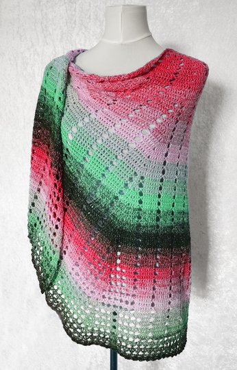 With these crochet pattern you can make a big cloth in a semicircular shape.