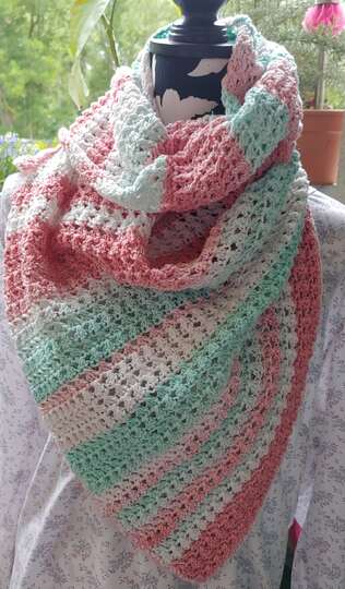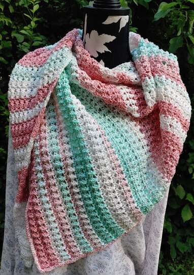Dieses assymetrische Tuch ist einfach und schnell zu häkeln. Das sich immer wiederholende Muster, ergibt einen interessanten Verlauf, der an kleine Wellen erinnert.