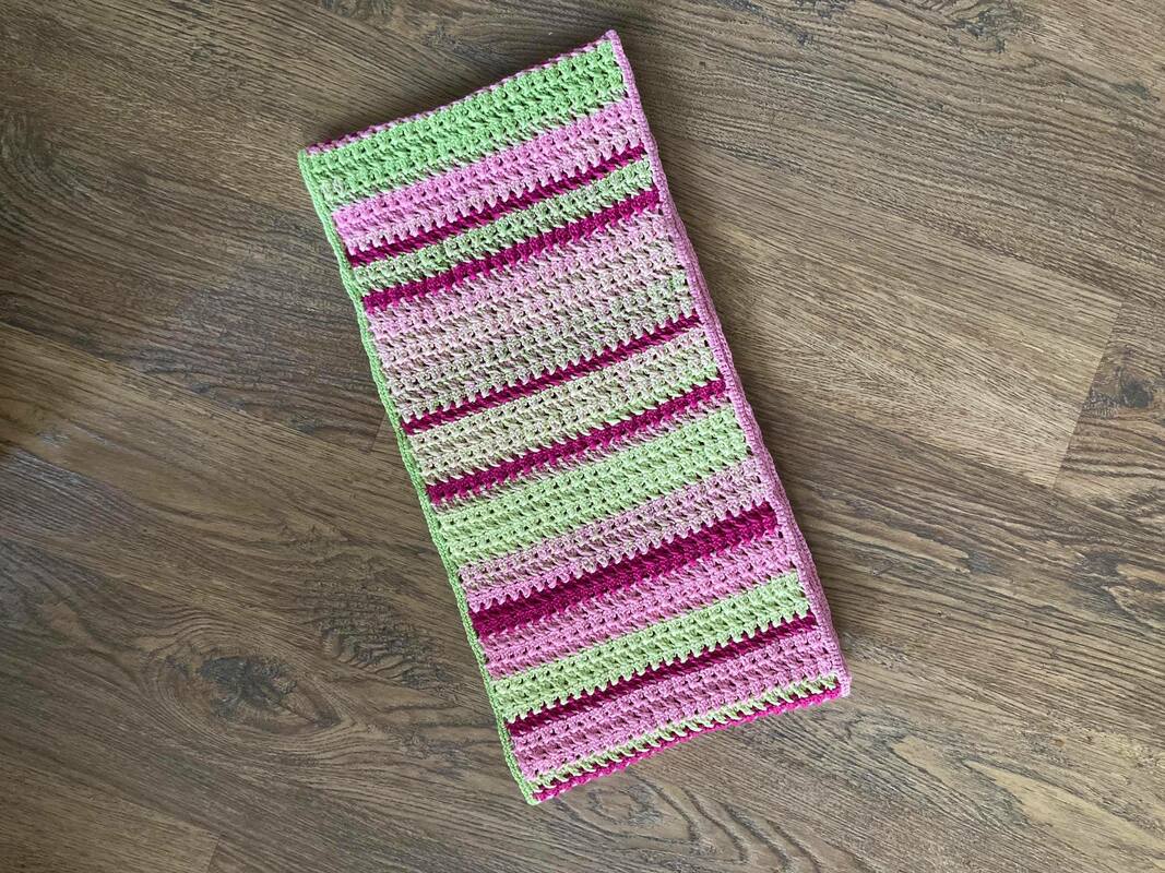 Welches Garn du für das Tuch verarbeiten möchtest bleibt dir überlassen.