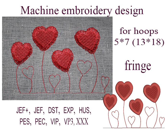 Heart fringe embroidery design heart Design.