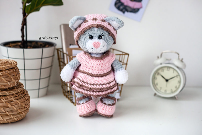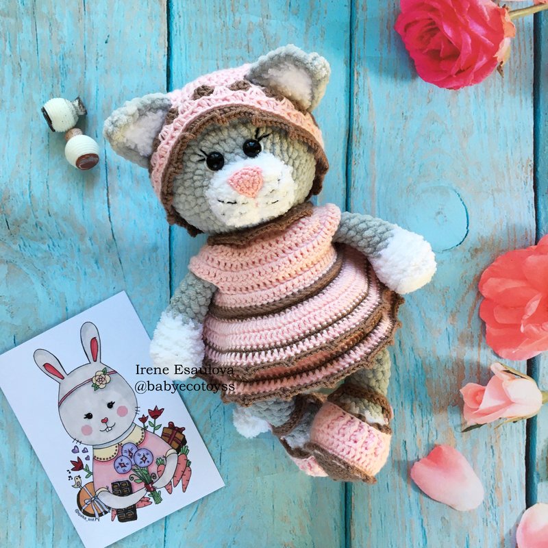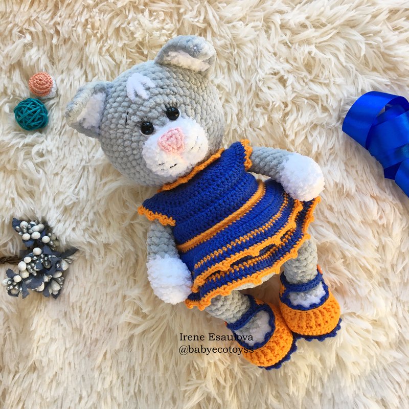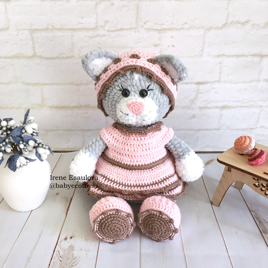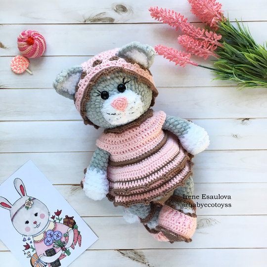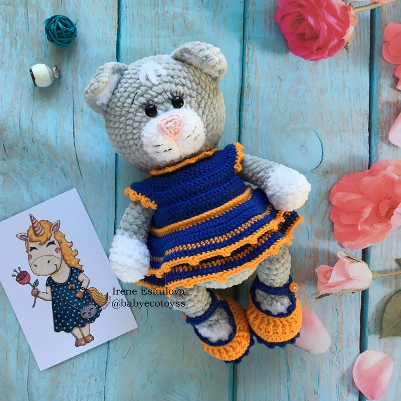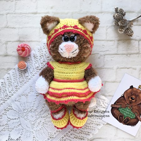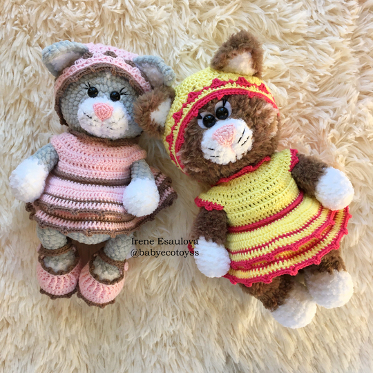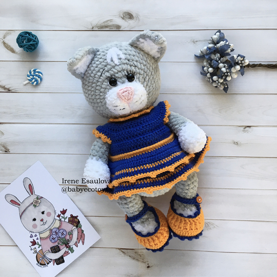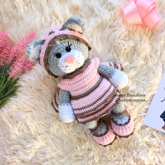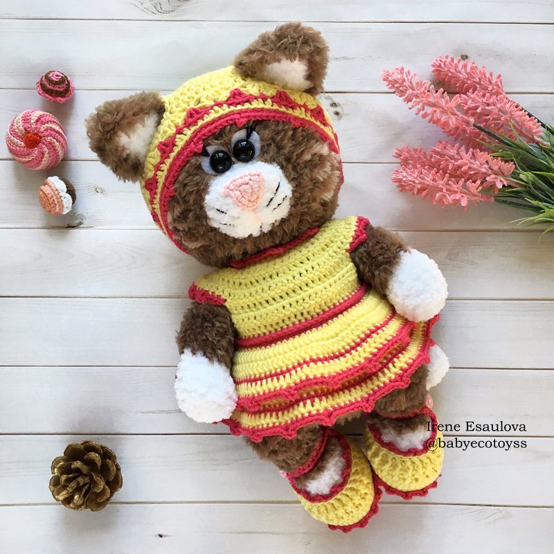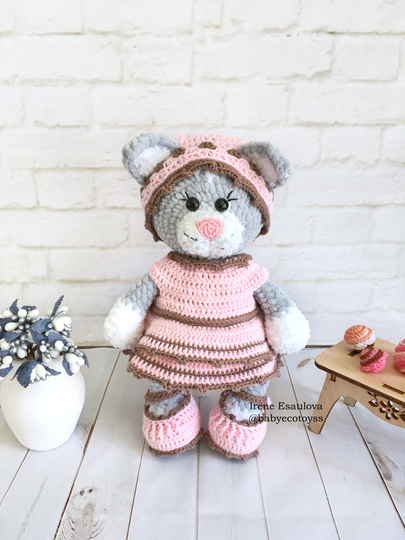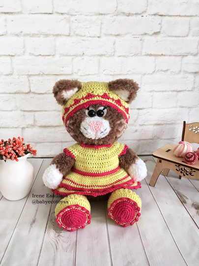 This listing is an original pattern (written in English) to create your own cute cat in outfit (shoes, hat and dress)!