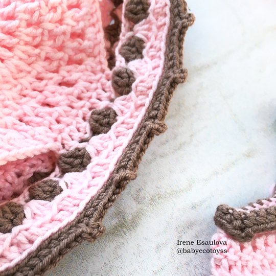 This pattern is suitable for those with beginner crochet skills and have knowledge of magic ring/circle, chain, single crochet, single crochet increase and invisible decrease, back and front loops, slip stitch, double crochet, half double crochet, back post and front post double crochet, basic sewing.