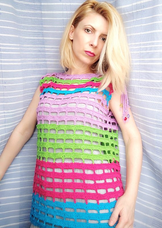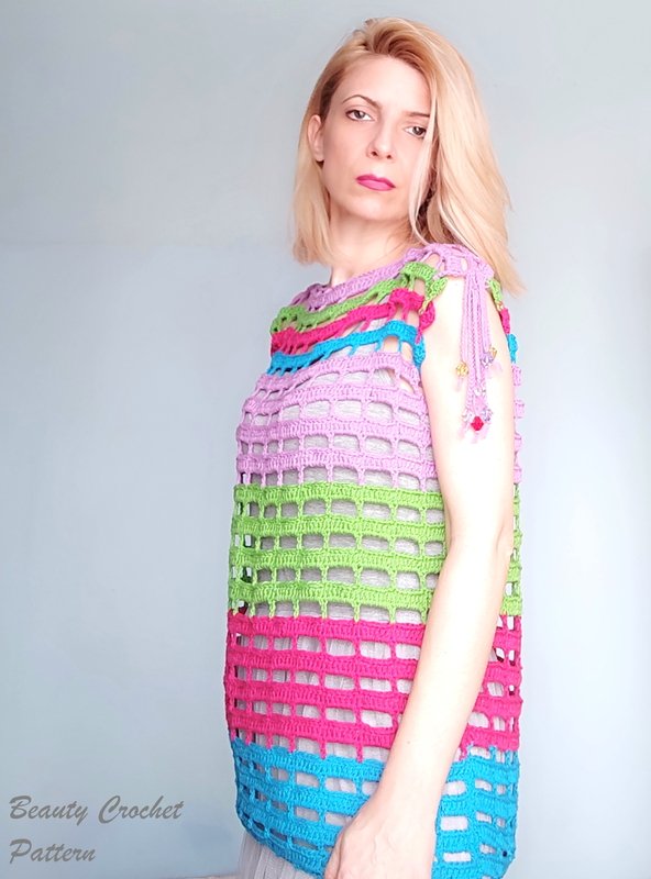 Rainbow Top is an oversized Crochet Top Pattern in Boho style. Pattern comes in 2 sizes: S/M; L/XL