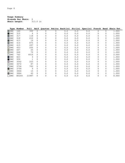A Symbol Key page in DMC floss code