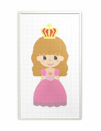 Princess in pink dress embroidery cross stitch pattern
