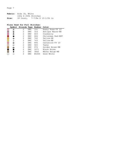 A Symbol Key page in DMC floss code